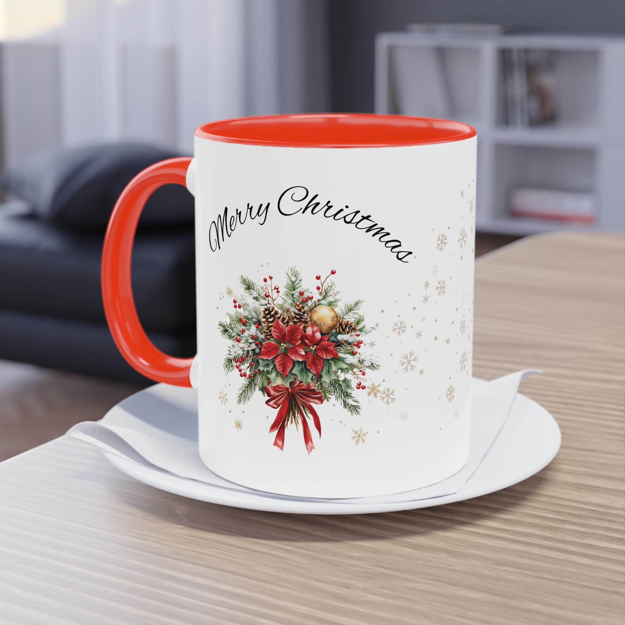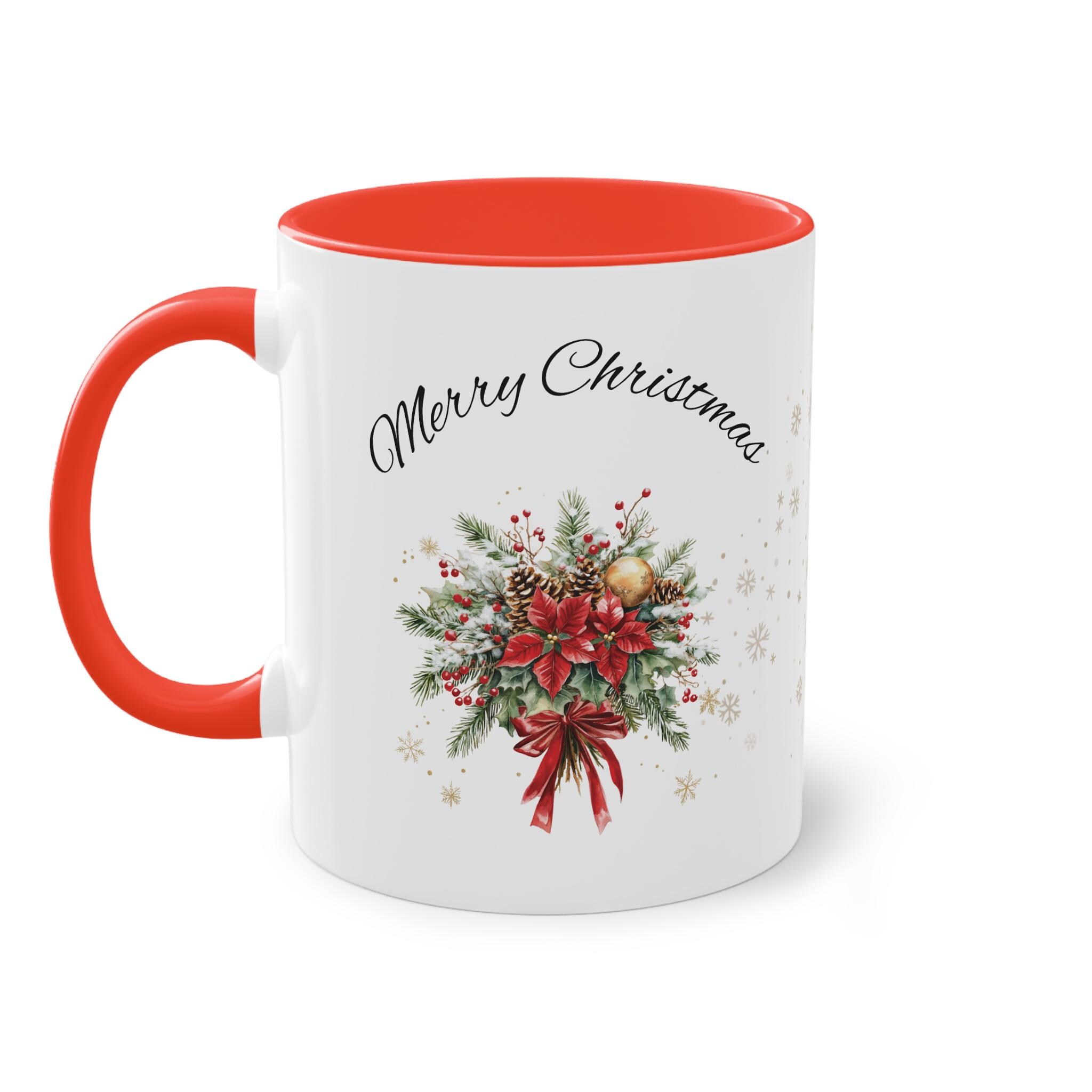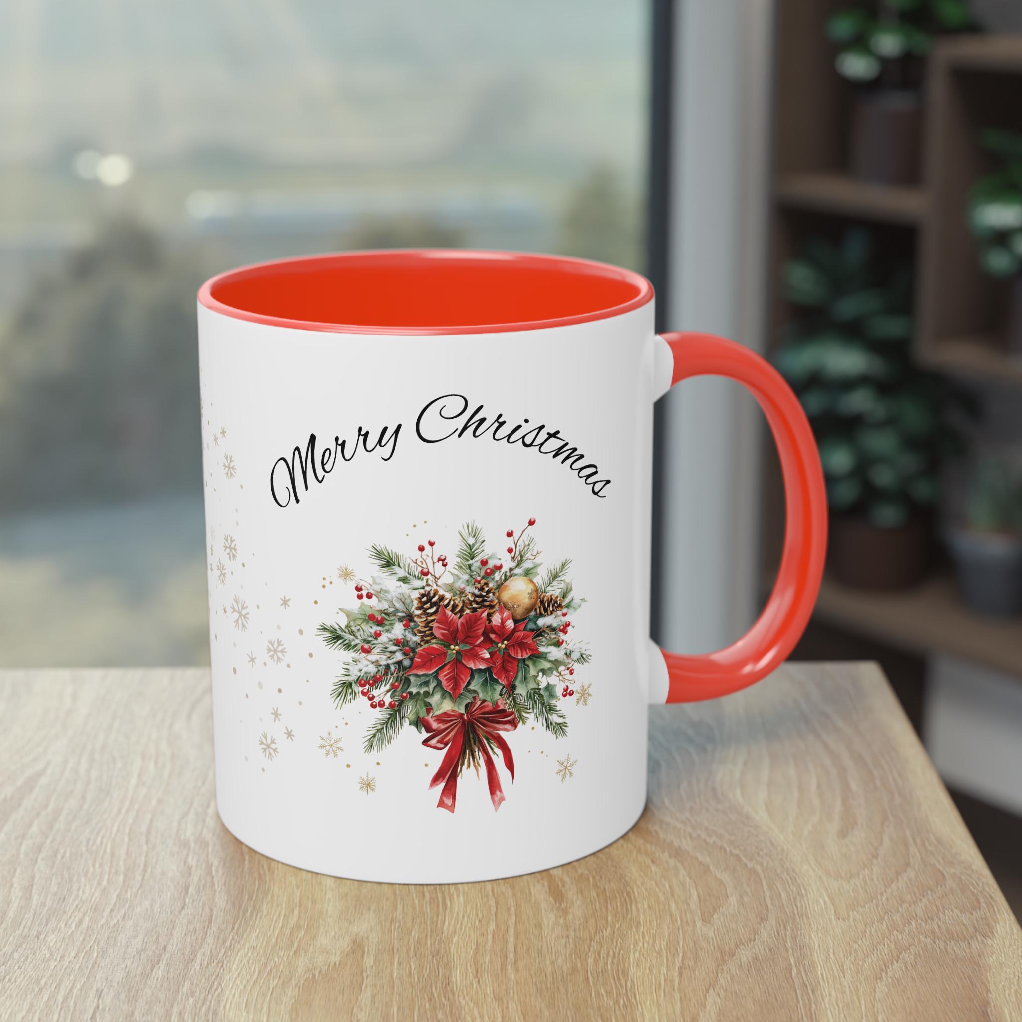 This Merry Christmas coffee mug is perfect for the holiday season, bringing a cheerful and festive vibe to your morning routine. With its white exterior and colorful interior and handle, this mug is dishwasher and microwave safe, making it convenient for daily use. Ideal for those who love to celebrate Christmas and enjoy a hot beverage during the colder months.