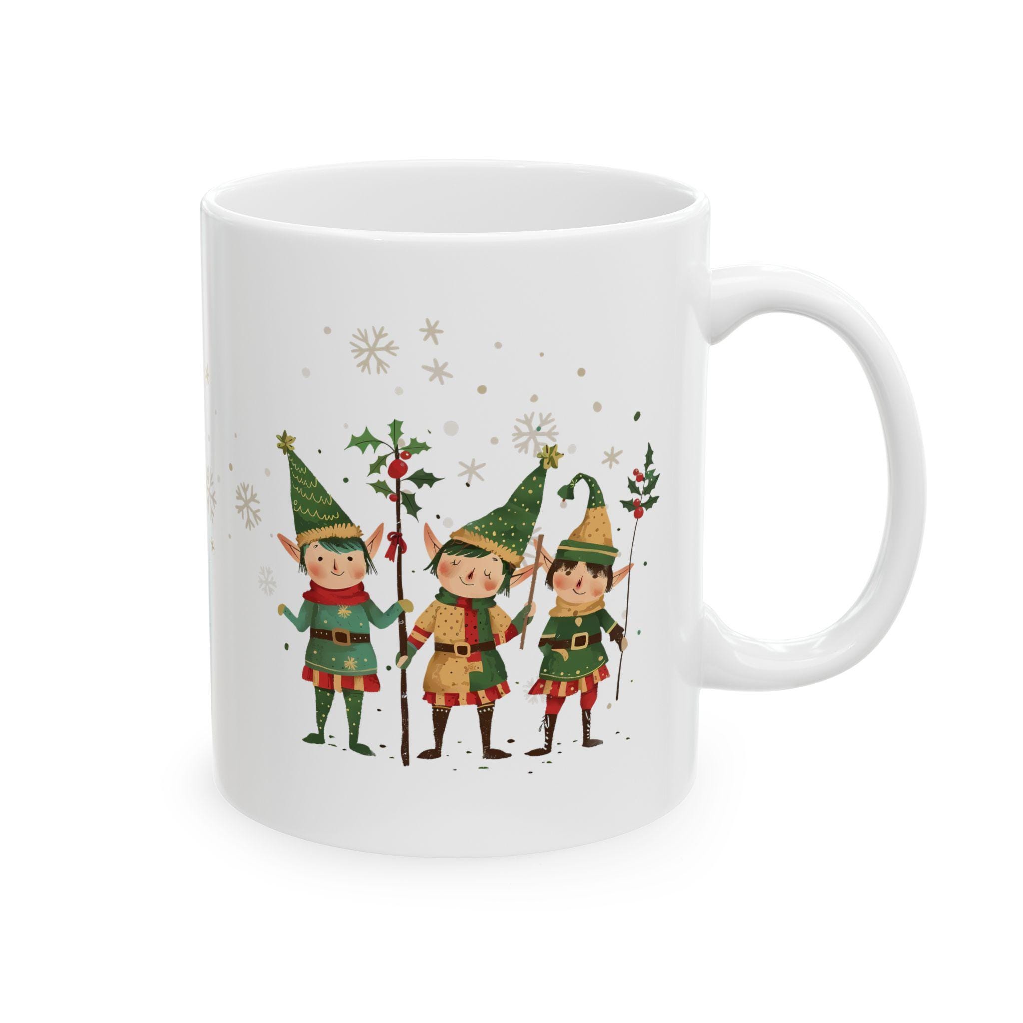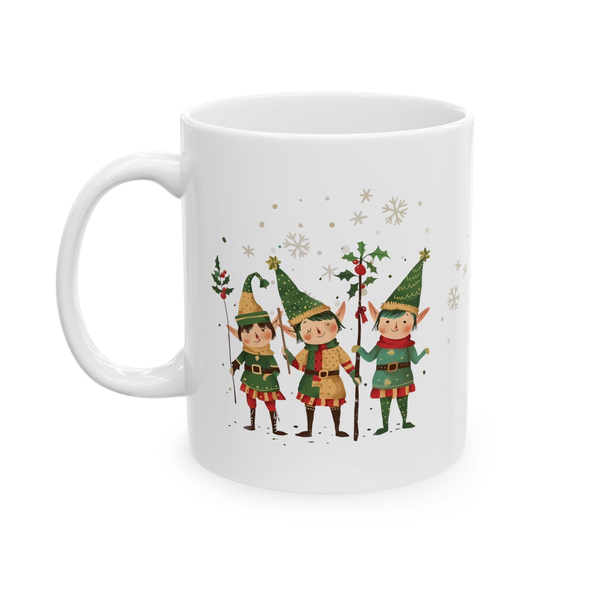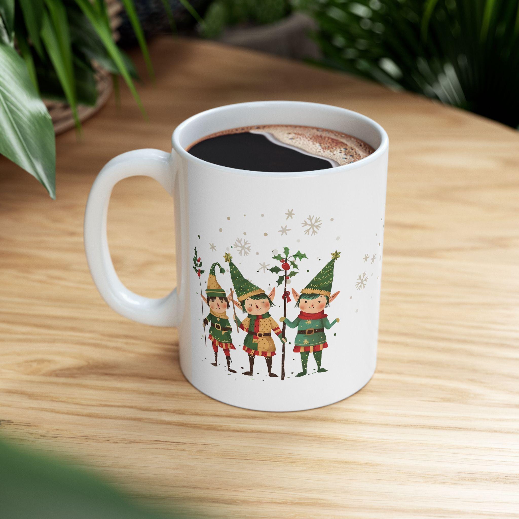 A Christmas Elf Illustration Mug perfect for adding festive cheer to your morning coffee or evening tea. The vibrant colors and glossy ceramic finish make it a joy to use. Ideal for holiday enthusiasts and those looking to embrace the Christmas spirit in their daily routine.