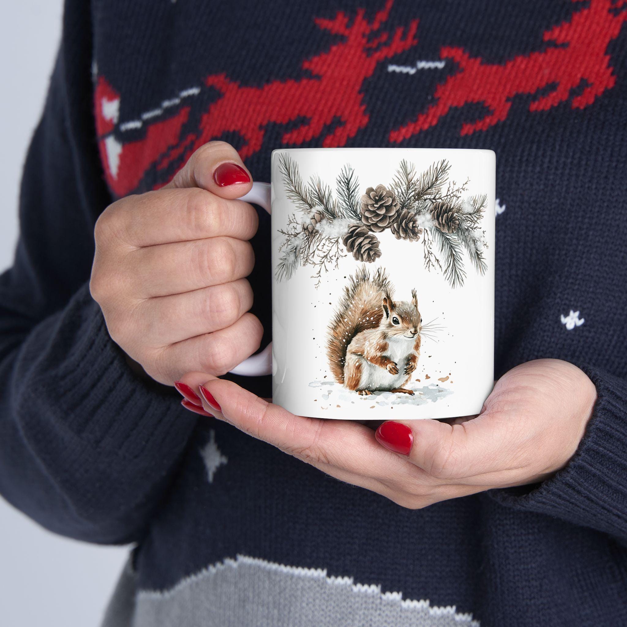 Steam rises in soft spirals from this glossy ceramic mug, carrying a hint of cinnamon and the hush of a winter evening. The cheerful Christmas design brightens early mornings and late-night cocoa runs, fitting naturally into cozy routines—wrapped in a blanket, trimming the tree, or passing around after a neighborhood cookie swap. It feels familiar in small rituals: the satisfying weight in your hands, the warm cup against your palms, the pop of vibrant color against white snow outside. For people who celebrate the season with slow moments and shared laughter, this mug brings a touch of festive warmth to everyday life and seasonal gatherings.